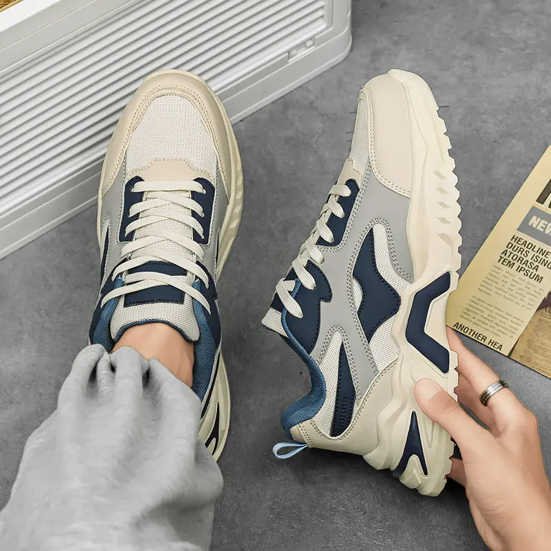 ออกแบบใหม่ฤดูร้อน Retro Sporty ตาข่าย LACE-up หนังเทียมผู้ชายรองเท้าสบายๆรองเท้าวิ่งกีฬารองเท้าผ้าใบที่กำหนดเอง