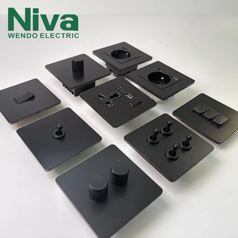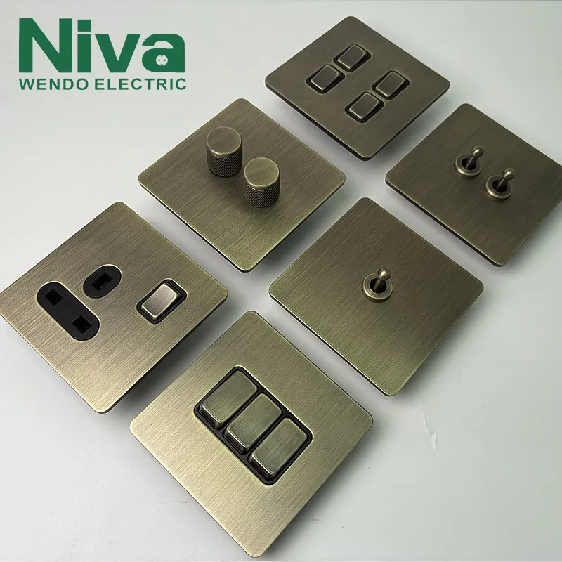 Niva Brass Toggle Light Wall Switches Custom UK EU US Standard แผงสแตนเลสโลหะไฟฟ้า Vintage สวิตช์และซ็อกเก็ต