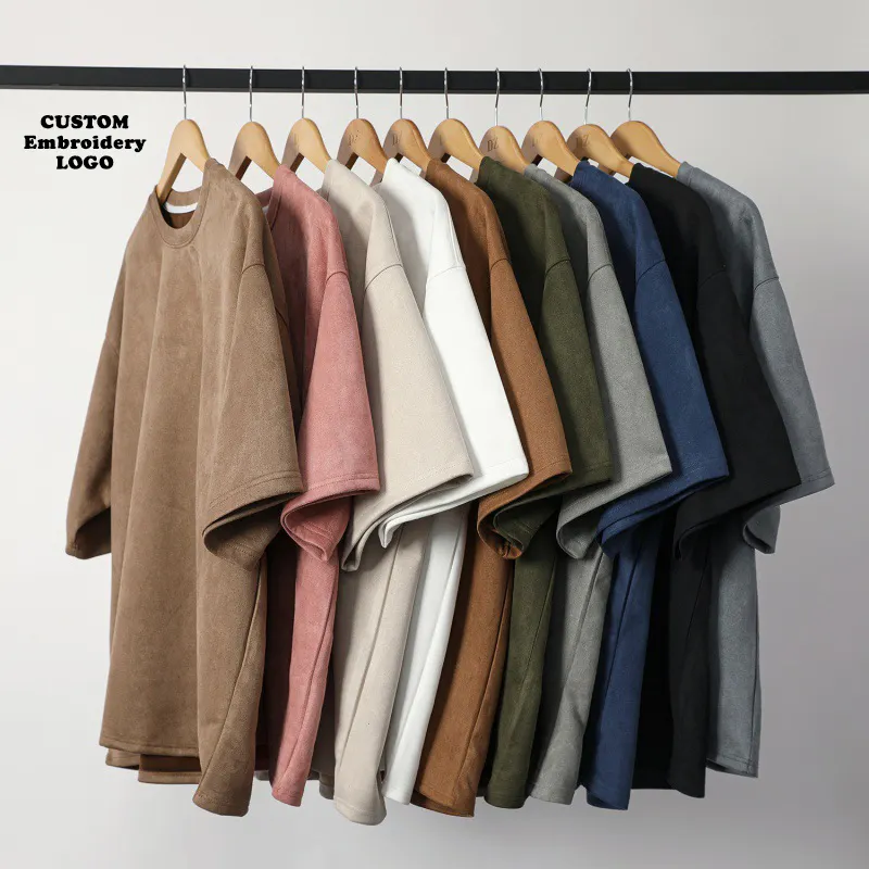 Oeko-Tex 100 Men's Blank T-Shirts Black High Quality Boxy Graphic Oversized Suede Tshirt Custom 3D Embroidery T Shirts for Men