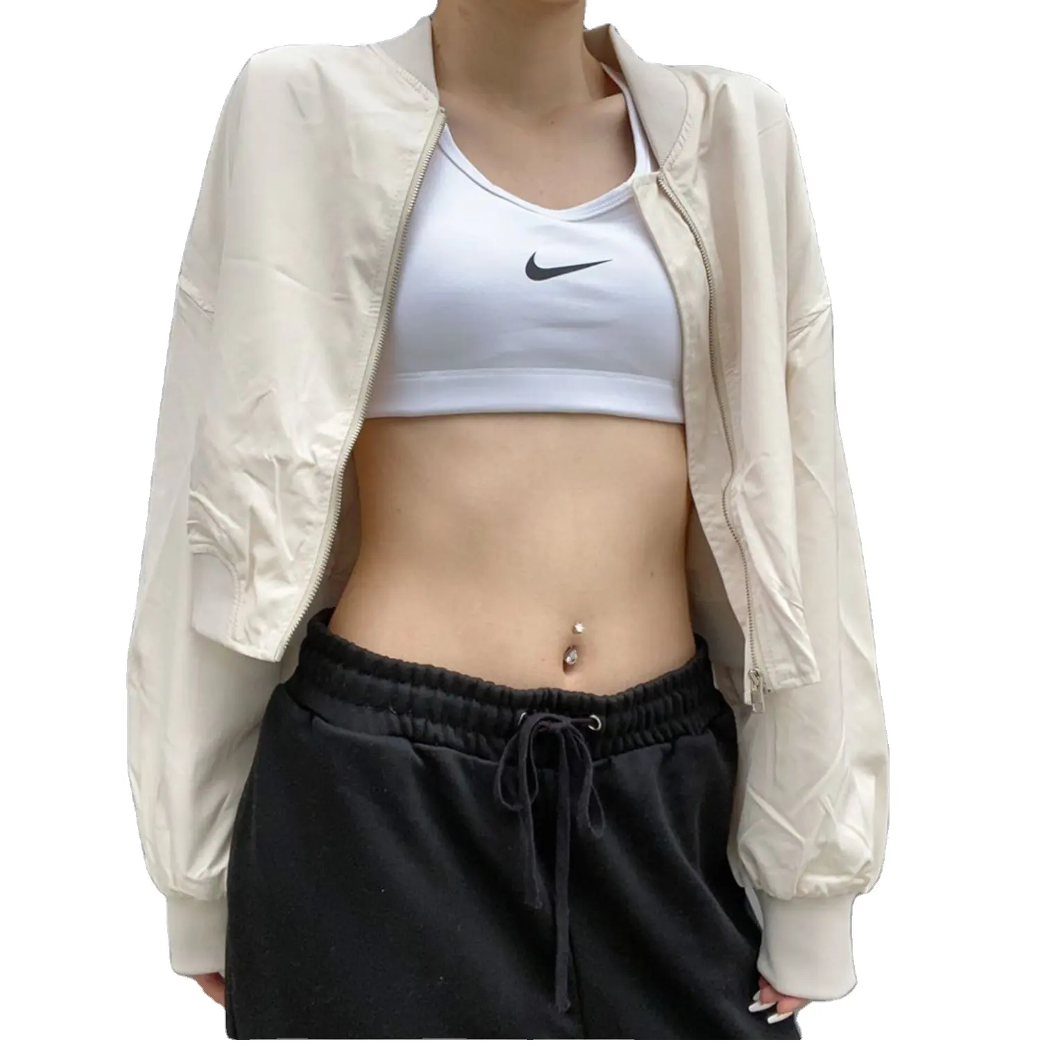 OEM ฤดูใบไม้ผลิและฤดูใบไม้ร่วงทอโพลีเอสเตอร์ลำลองผู้หญิงเสื้อแขนยาวกันน้ำ Lady Coat สำหรับกลางแจ้งผู้หญิงแจ็คเก็ตเบสบอล