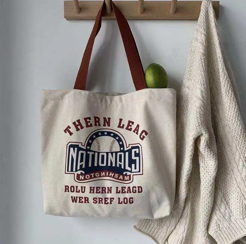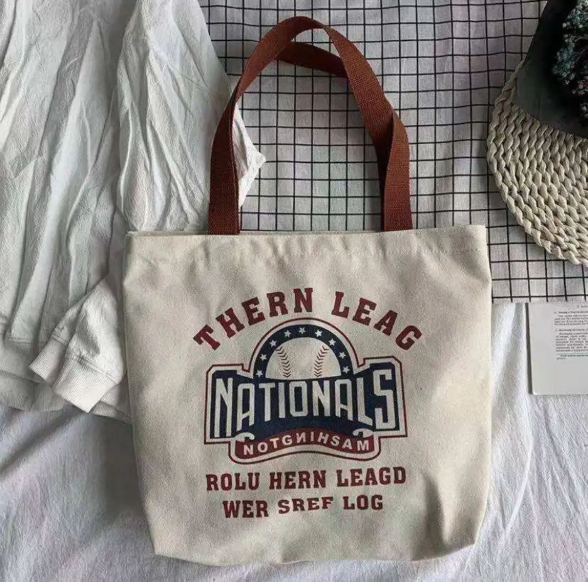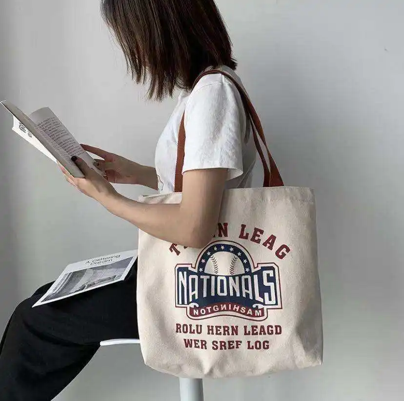 โรงงานเดิมออกแบบใหม่กระเป๋าผ้าฝ้ายผ้าแคนวาสแบบพกพาความจุขนาดใหญ่กระเป๋าช้อปปิ้ง