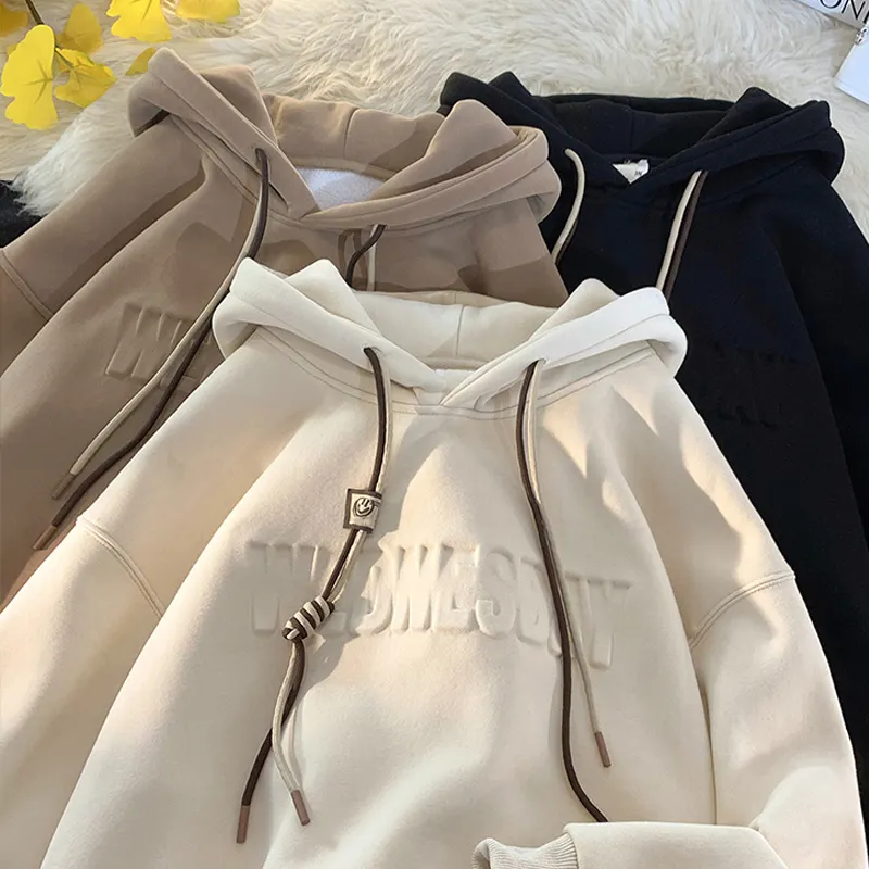 ขนาดใหญ่ 100% Cotton French Terry 3D พิมพ์ Streetwear Hoodie Unisex เฮฟวี่เวทเสื้อสวมหัวลายนูนเสื้อยืด