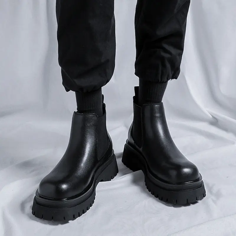 Platform High Top Winter Thick-soled Men's Leather Casual Ankle Work Boots Formal Office Cowboy Chelsea Shoes