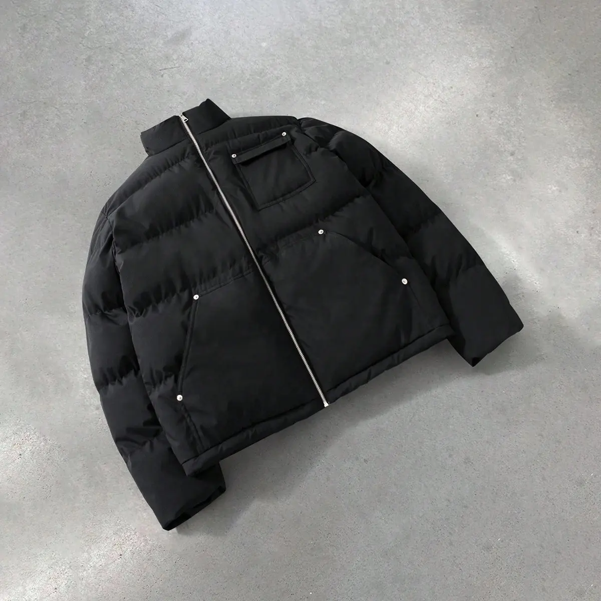 Rainbow Spray Customizable Casual Sports Loose Street Retro Style Puffer Jackets for Men Y2k Cropped Ins Outerwear Puffer Jacket