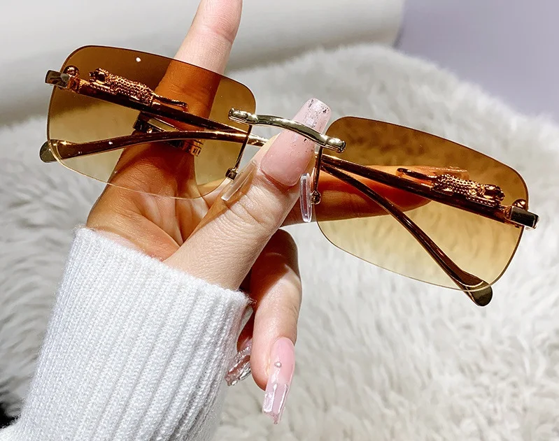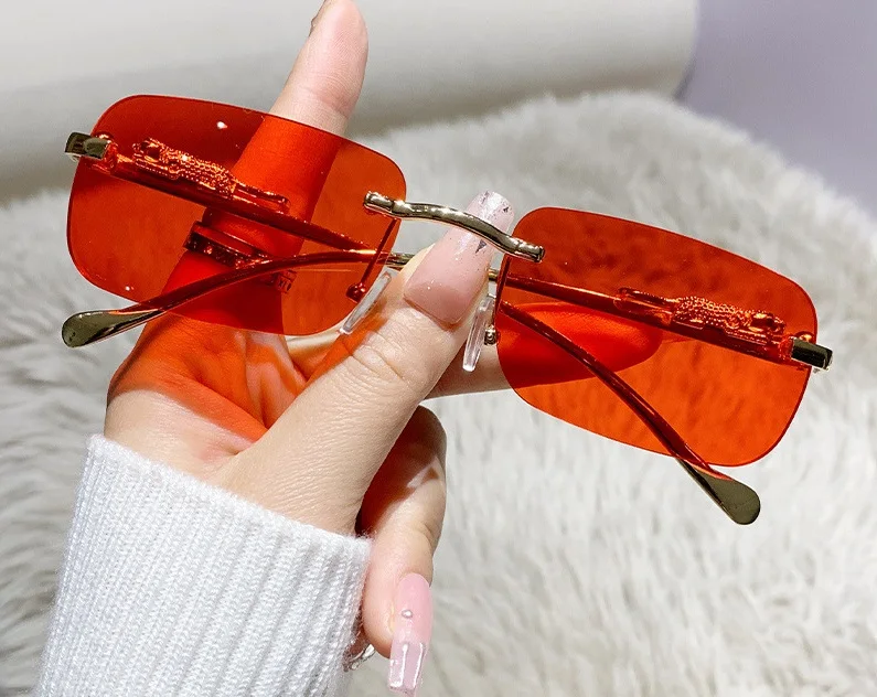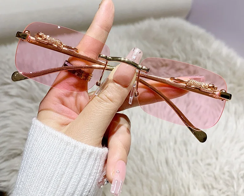 แว่นกันแดดป้องกันรังสียูวีไร้ขอบกรอบสี่เหลี่ยมย้อนยุคสำหรับผู้หญิงและผู้ชาย