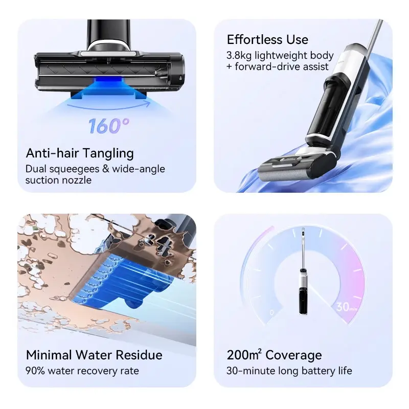 Self-Cleaning Function Rechargeable Water Vacuum Cleaner Wet Dry All in One Cordless Mop for Home Dust Sweeper