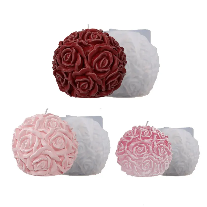 SILIKOLOVE เค้กเครื่องมือตกแต่งบ้าน 3D ดอกไม้ Rose Ball สบู่แม่พิมพ์ DIY ซิลิโคน Rose เทียนแม่พิมพ์