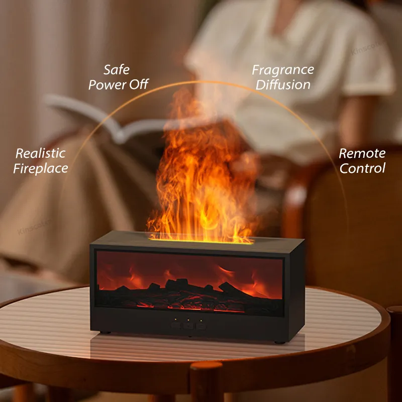 จำลองกองไฟเปลวไฟกระจายแสงกลางคืนที่มีสีสันน้ำมันหอมระเหยกระจายเตาผิงพร้อมตัวจับเวลาระยะไกลสำหรับของขวัญสร้างสรรค์บ้าน
