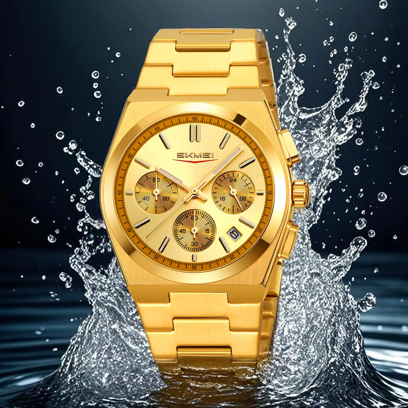 นาฬิกาจับเวลา SKMEI 9371 หรูหราสายสแตนเลสคุณภาพดีตัวอย่างนาฬิกาข้อมือ OEM โลโก้ผู้ชายนาฬิกาควอตซ์