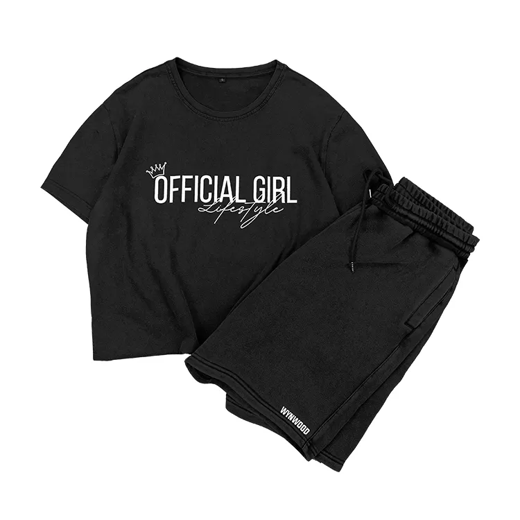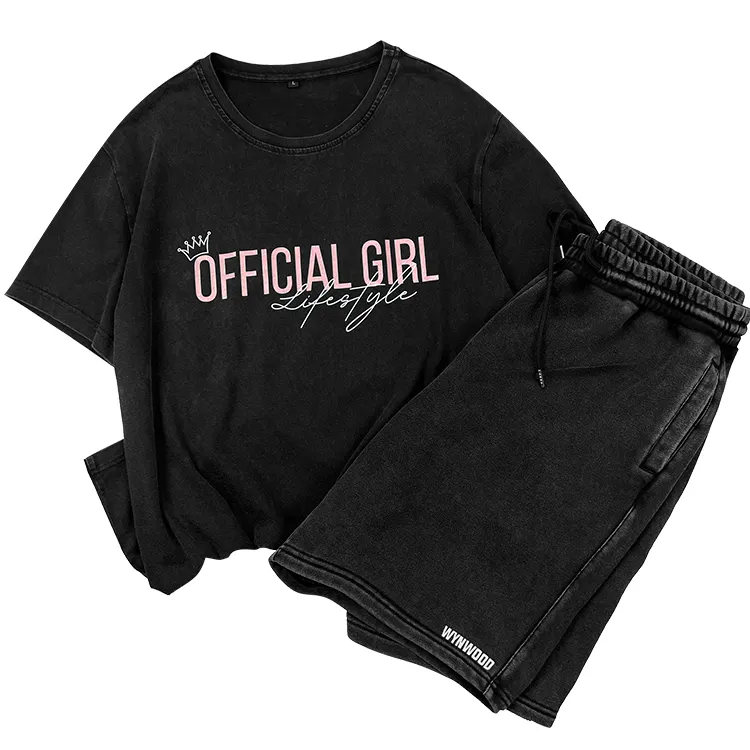 Streetwear Washed Distressed Unisex Mens Summer 2 ชิ้นชุดเสื้อยืดและกางเกงขาสั้นผู้ชาย