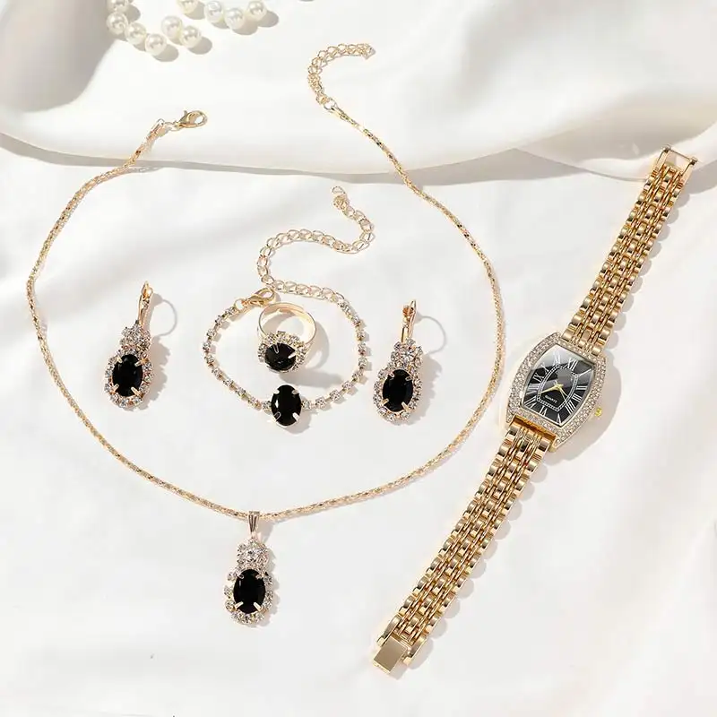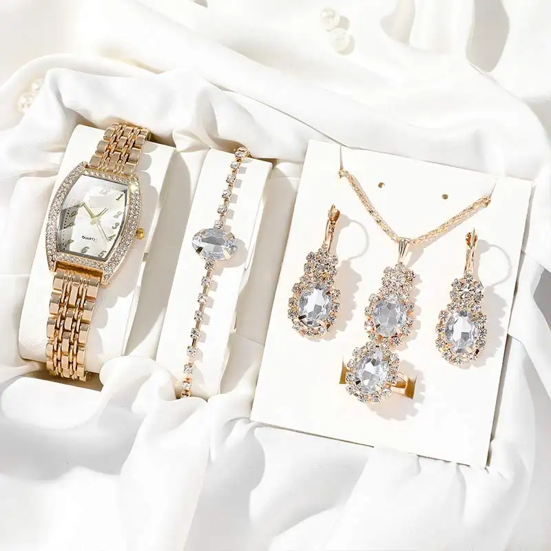 LP10 New Korean Style Casual Fashion Quartz Watch Luxury Square Leather Bracelet Rhinestone Jewelry Set Box Charm Latest Alloy