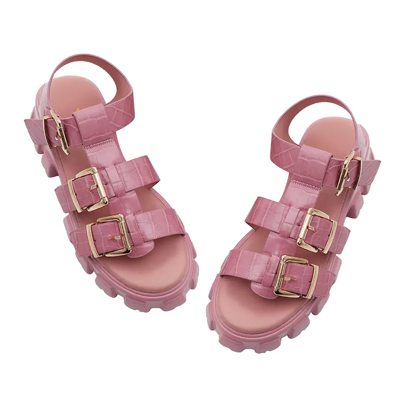 Summer New Women's Sandals with Thick Soles Casual Wear Outside Height-raising Metal Tower Buckle Sandals