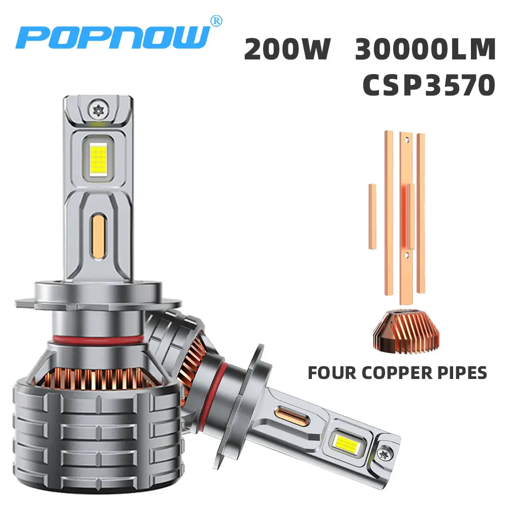 Super Bright 200W 30000LM H7 Led Headlight Bulb Four Copper Pipes 9005 9006 H4 H11 H7 Led Lights for Cars