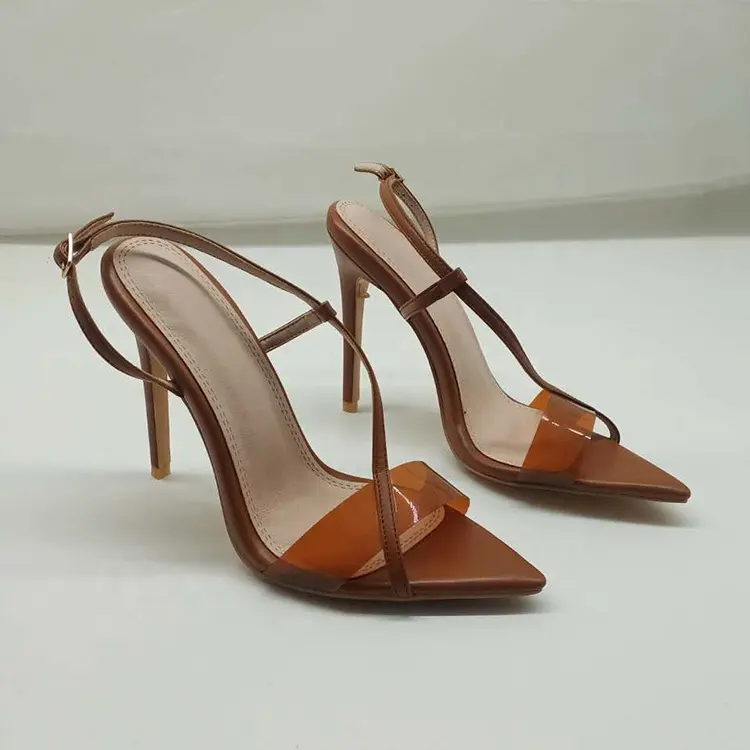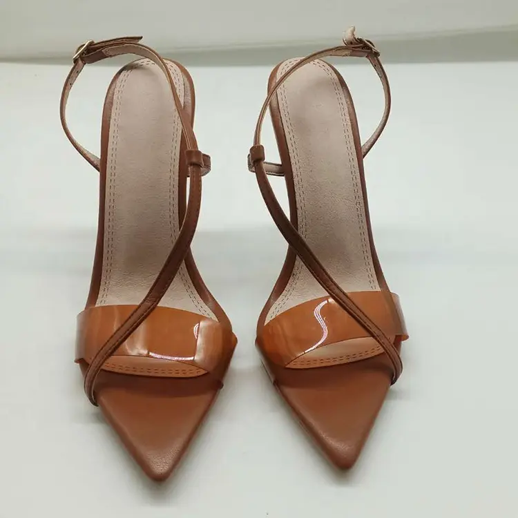 Top Quality Sexy Women High Heel Sandals 12cm Pointy Toe Brown Color Women Sandals 2024