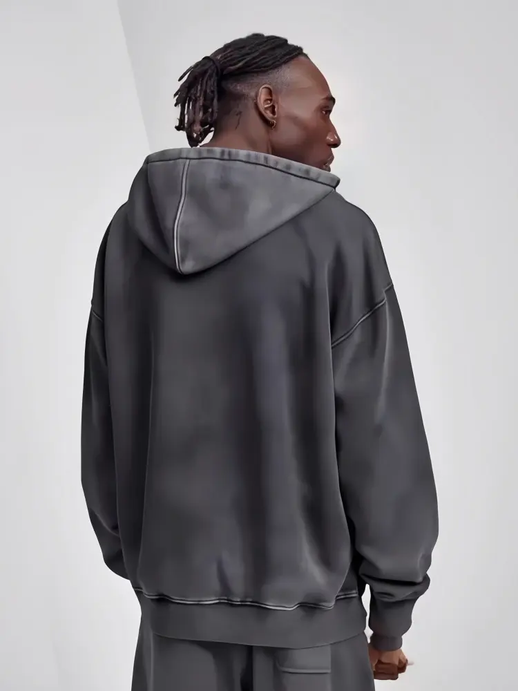 Vintage Batikล้างผ้าฝ้าย100% ผู้ชายZipper-Up HoodieหลวมFit Hooded Collar Solid Terry Lining Anti-Pillingสำหรับฤดูใบไม้ร่วง