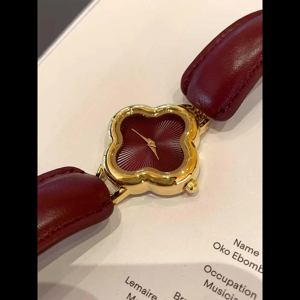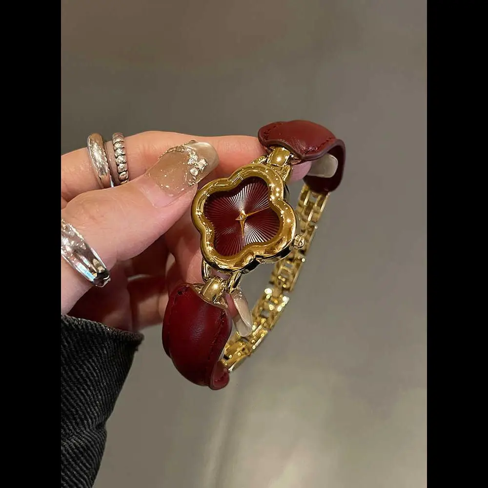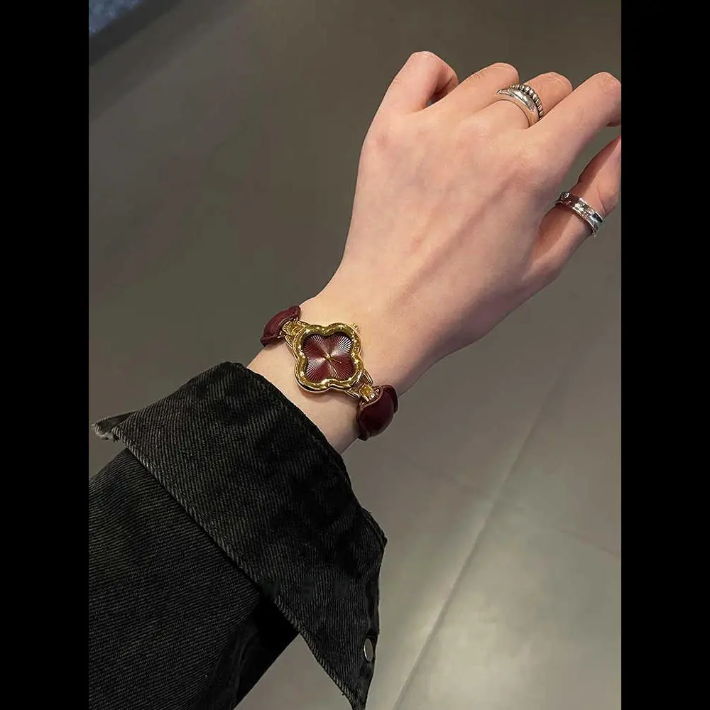 Vintage Quartz Watch Authentic Four-Leaf Clover Watch for Women, Light Luxury and Niche, Retro High-End Womens Bracelet