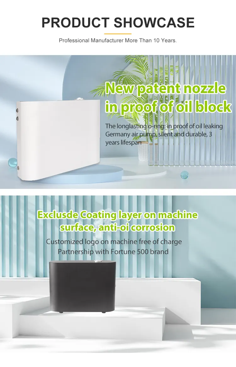 เครื่องกระจายกลิ่นหอมแบบติดผนังพร้อมพัดลมเครื่องกระจายน้ำมันหอมระเหยแบบไร้น้ำสำหรับตกแต่งบ้านผ่อนคลายการติดตั้งแบบพกพา