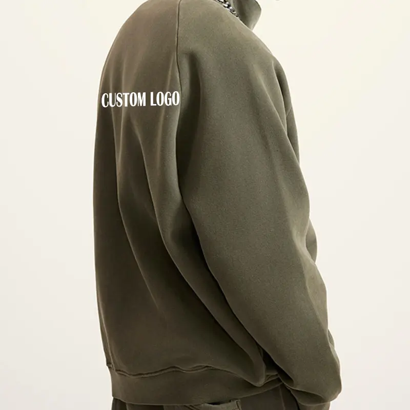 ขายส่งผ้าฝ้าย 350G Heavy Duty Vintage Wash Raglan Sleeve Zipper Hoodies เสื้อหลวมขนแกะแจ็คเก็ตสำหรับชาย