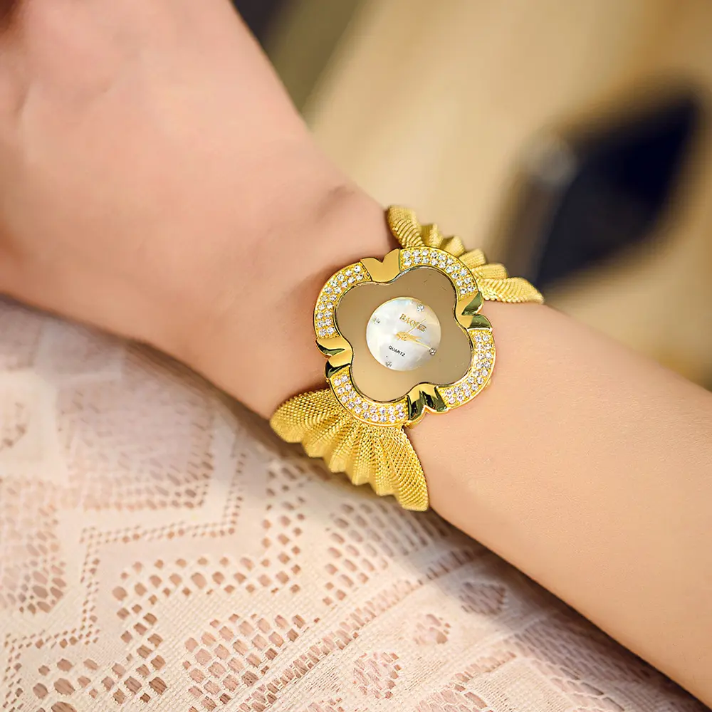 New Trendy Gold Women Luxury Sport Wrist Watch Shiny Lady Diamond Jewelry Watches Design for Girls