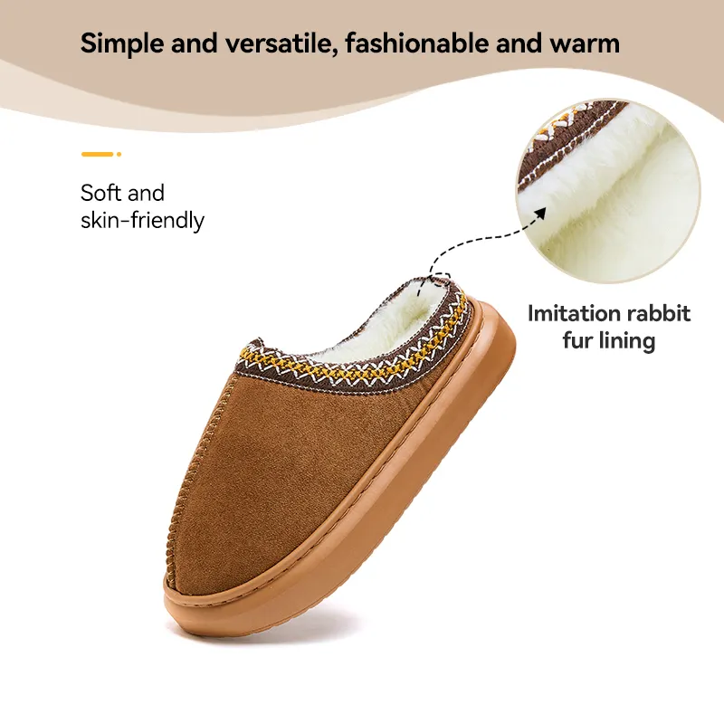 Winter Soft Faux Suede Fluffy Fur Home Indoor Warm Plush Ladies Men Shoes Slides Slippers for Women