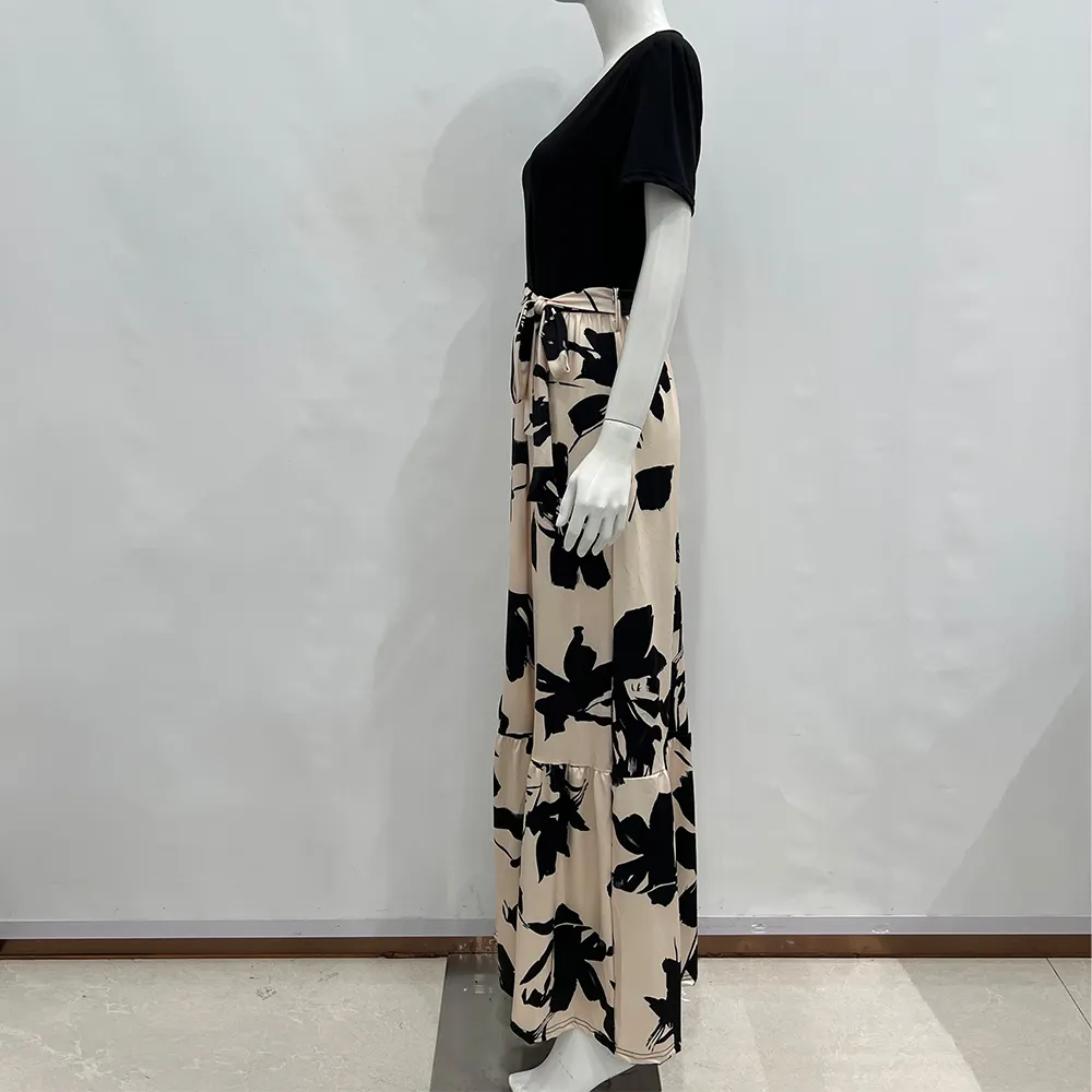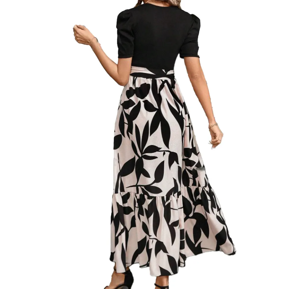 Wisrise Fashion Floral Printed Round Neck Dress Elegant Vacation Style Midi Dress