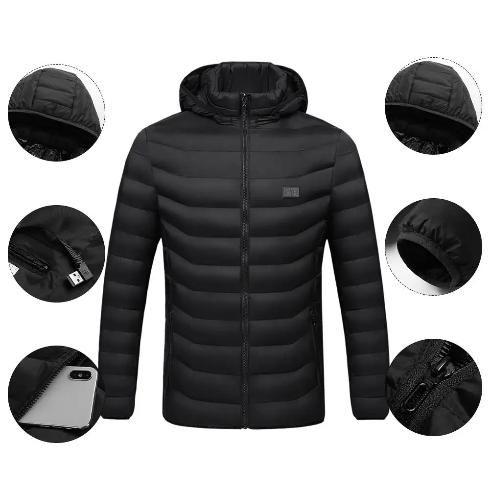 Xsunwing S-5XL 19 Heat Zones Rechargeable Battery USB Heating Lightweight Heater Men Coats Waterproof Insulated Heated Jacket