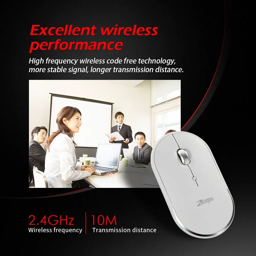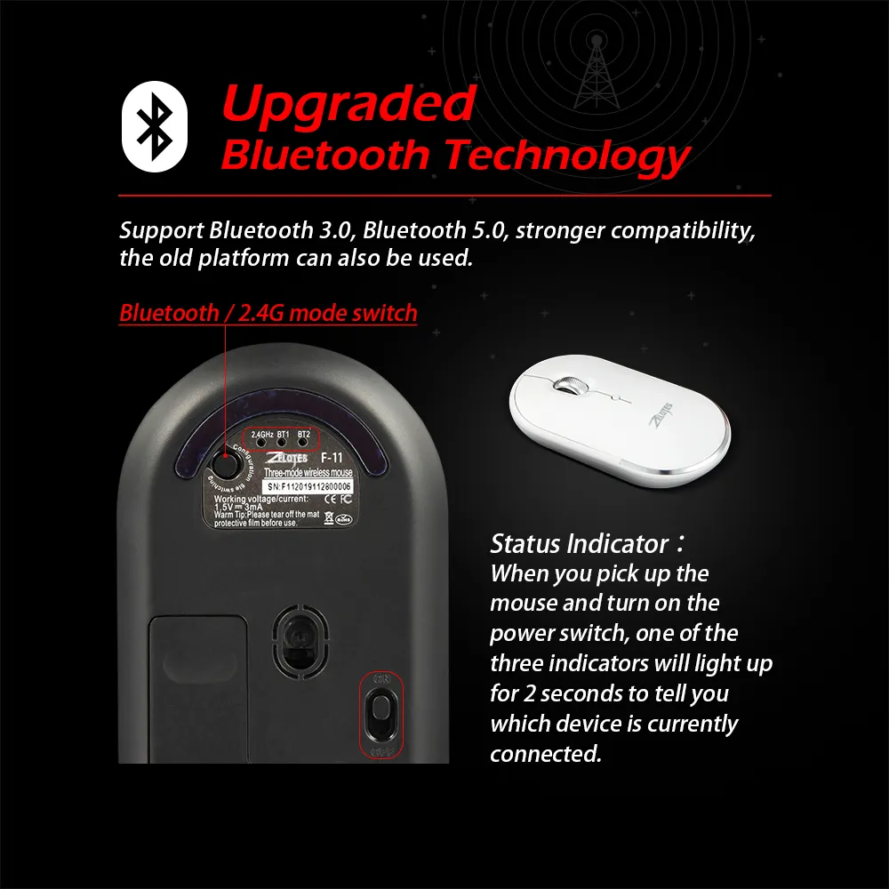 ZELOTES F-11 Office Supplies Mouse Computer Accessories Rechargeable 3 Device Connection Wireless Optical Mouse Wireless Mouse
